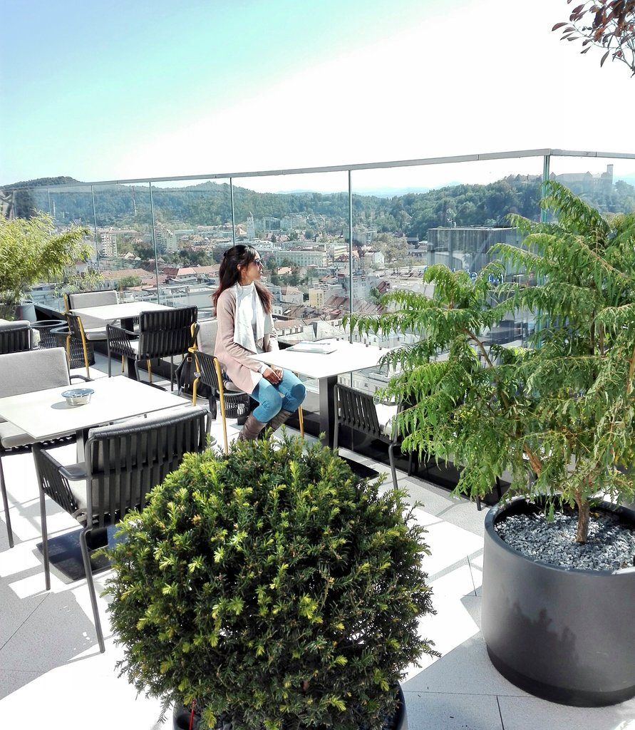 We headed immediately for the rooftop terrace, a must for any discerning Ljubjanites, and ooohed and aaahed over the panoramic views of the city, I could see the castle!
